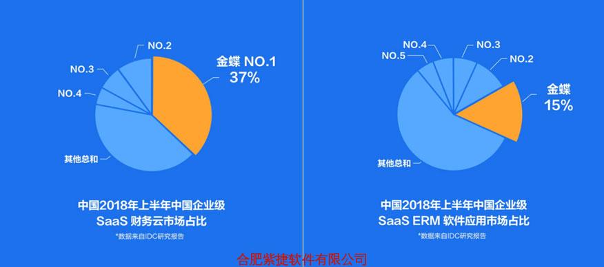 IDC《中国半年度企业级SaaS ERM应用软件市场跟踪报告》,金蝶在2018上半年SaaS ERM和SaaS财务云市场占比继续蝉联第一。