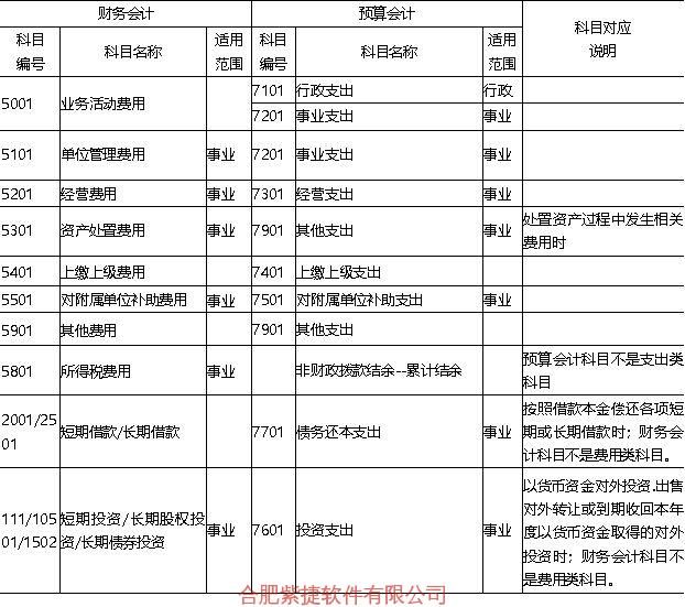 2. 费用类 会计 科目与预算支出科目对照表